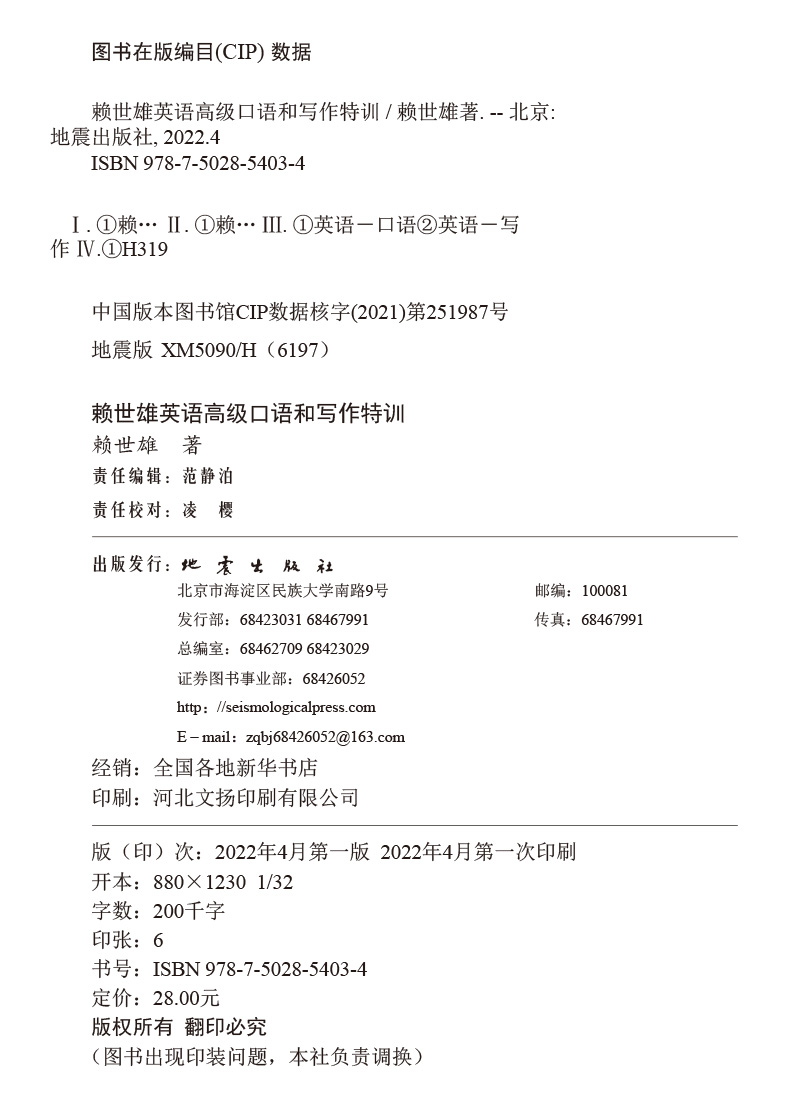 地震出版 大学英语及四级六级考研TOFELGRE考试学习资料 社 赖世雄 赖世雄英语高级口语和写作特训