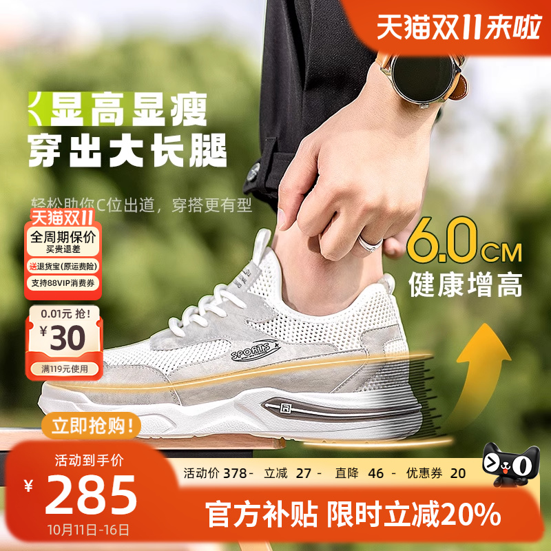 新款 秋季 透气运动休闲鞋 内增高网面鞋 高哥增高凉鞋 男款 镂空男鞋