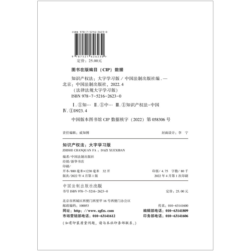 知识产权法 社 大字学习版 法制出版 大字醒目双色标注关联注释实用图表案例指引学法测试法律法规 法律法规大字学习版 2022新书