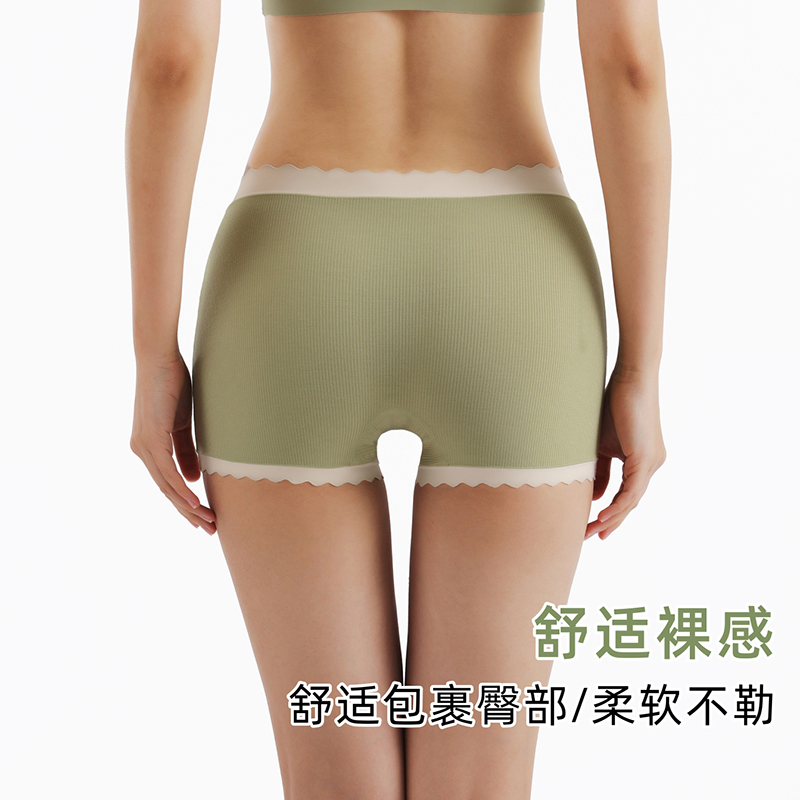 2025夏季 三合一平角裤 女防走光冰丝无痕收腹内裤 猫人粉底液安全裤