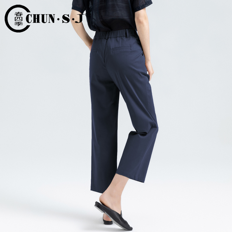 女春秋新款 休闲直筒慵懒松弛感裤 高腰垂感窄版 裤 子 西装 黑色阔腿裤
