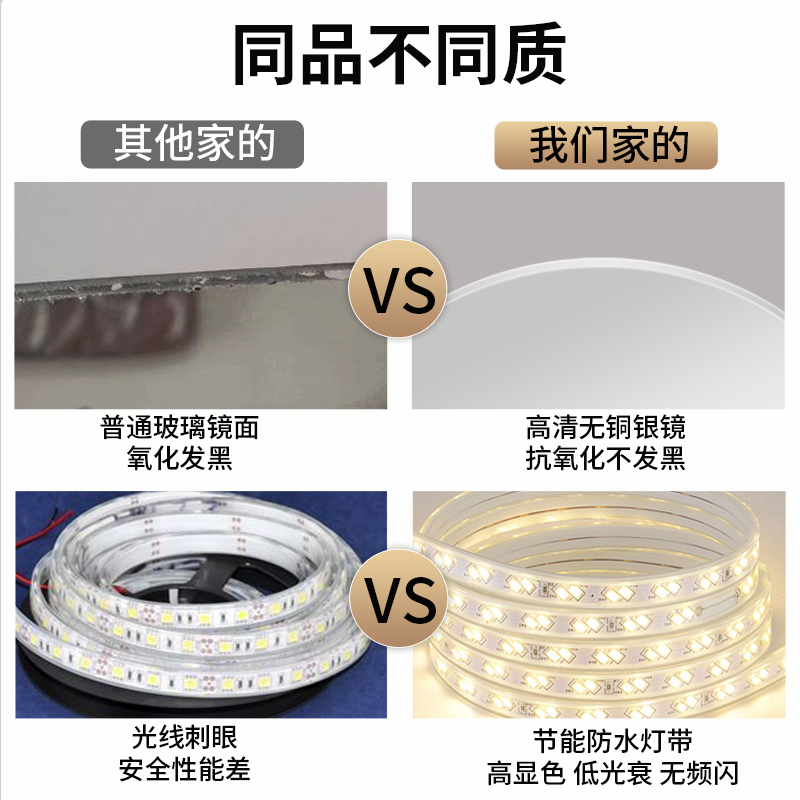 异形椭圆智能带灯梳妆镜壁挂房间化妆镜防雾触摸屏卫生间浴室镜