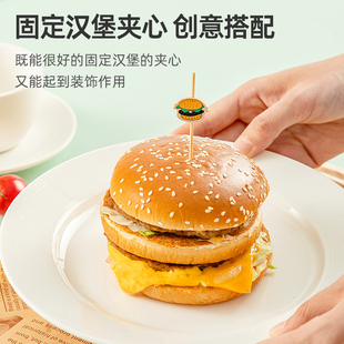 汉堡签插签水果签迷你面包固定插旗竹签定制小签子牙签水果叉果插