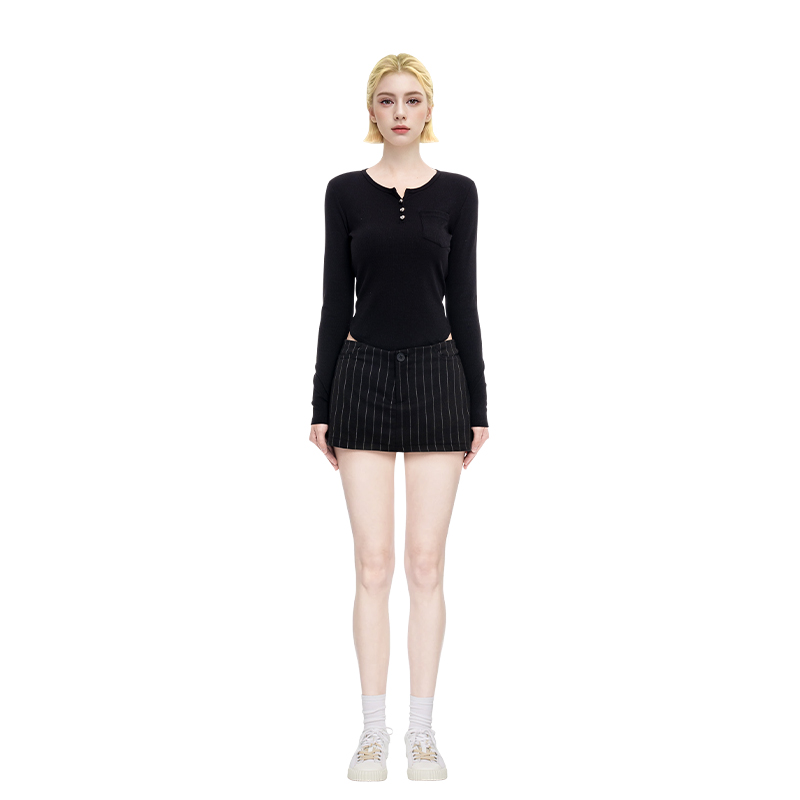 播商场同款 好看裙子BDS1BD1329 黑色开叉下摆半身裙女25春秋新款