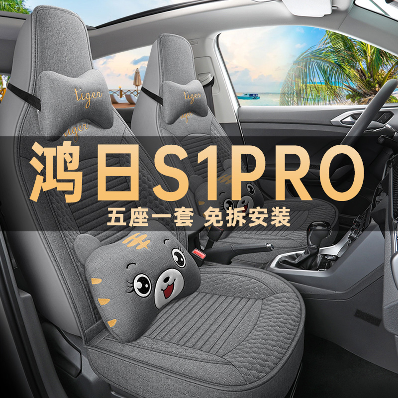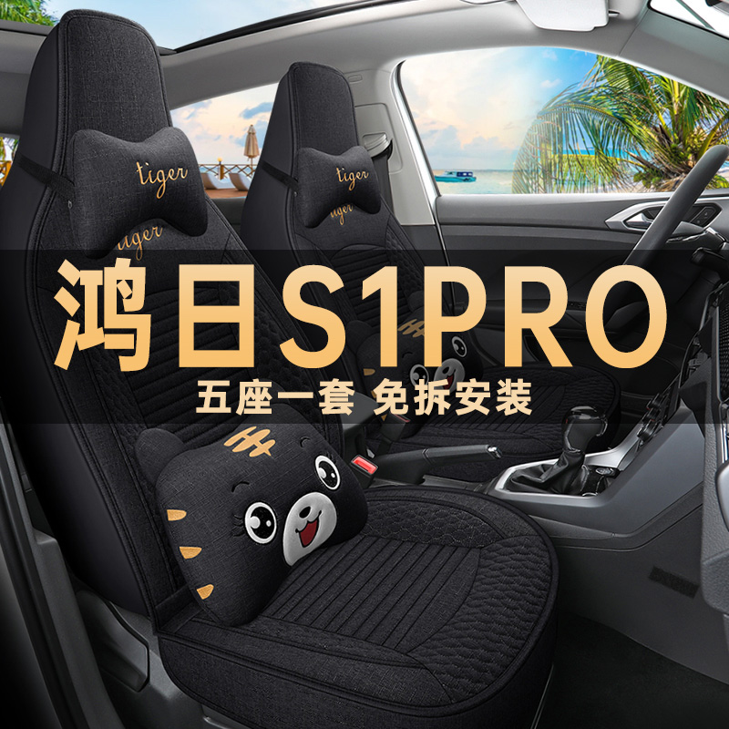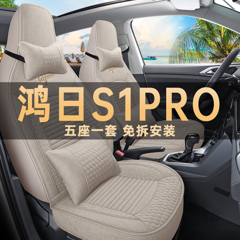 通用亚麻布艺坐垫改装 新款 鸿日S1pro座椅套电动汽车座套全包四季