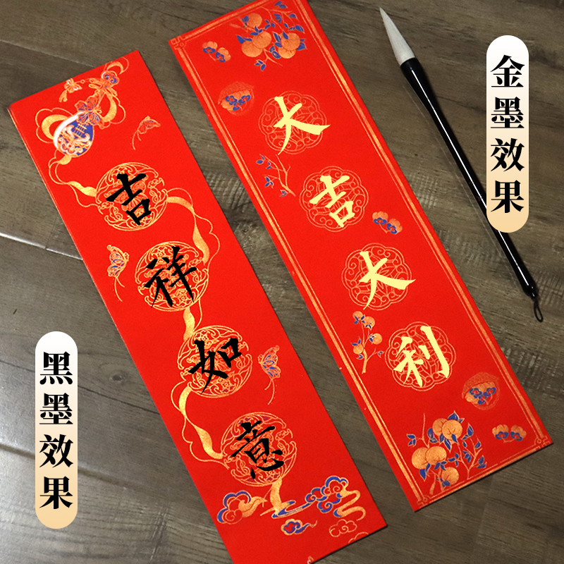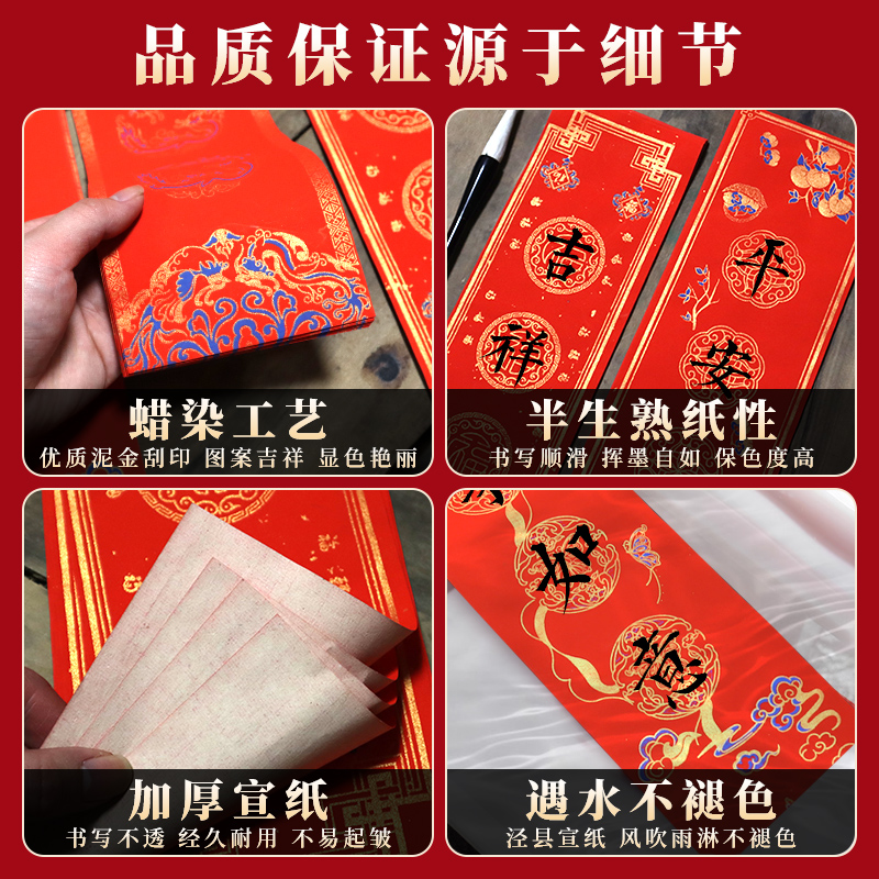 马年新款 高档挥春描红门贴2026年新年四字方格成语吉语手写空白万年红宣纸专用春节小对联纸毛笔抬头见喜珲春