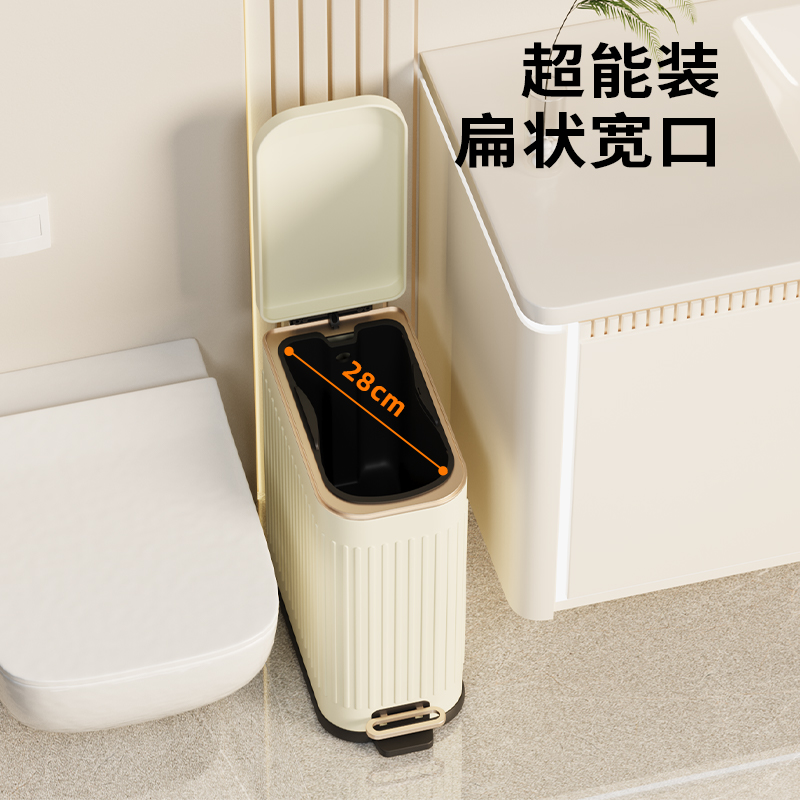 卫生间垃圾桶窄缝带盖家用厕所不锈钢脚踩收纳桶客厅马桶纸篓专用