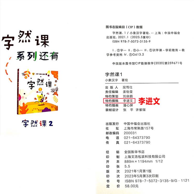 字然课李进文著 一年级上册下册必读课外书小象汉字看图识字绘本幼儿园大班学前绘本故事启蒙认字图书幼小衔接读物儿童自然课