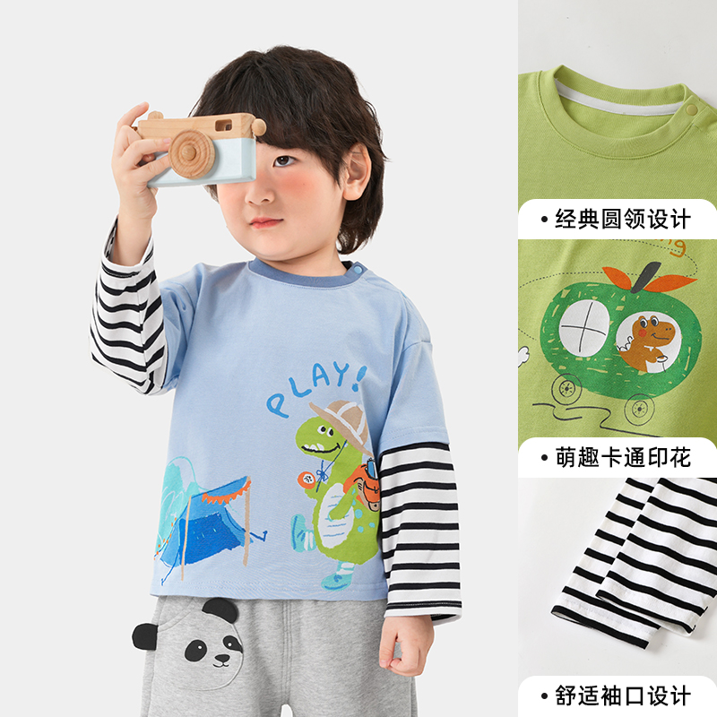男童长袖 洋气拼接款 t恤2025秋装 纯棉T恤打底衫 潮 新款 小象汉姆童装