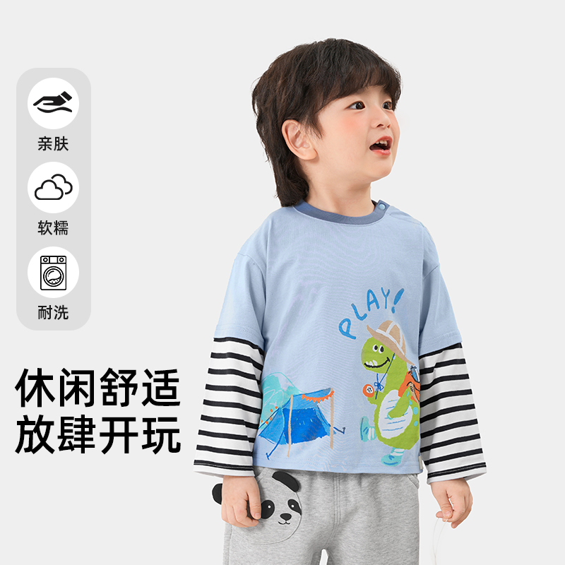 儿童打底衫 小象汉姆童装 纯棉2025秋装 T恤拼接款 男孩上衣 男童长袖