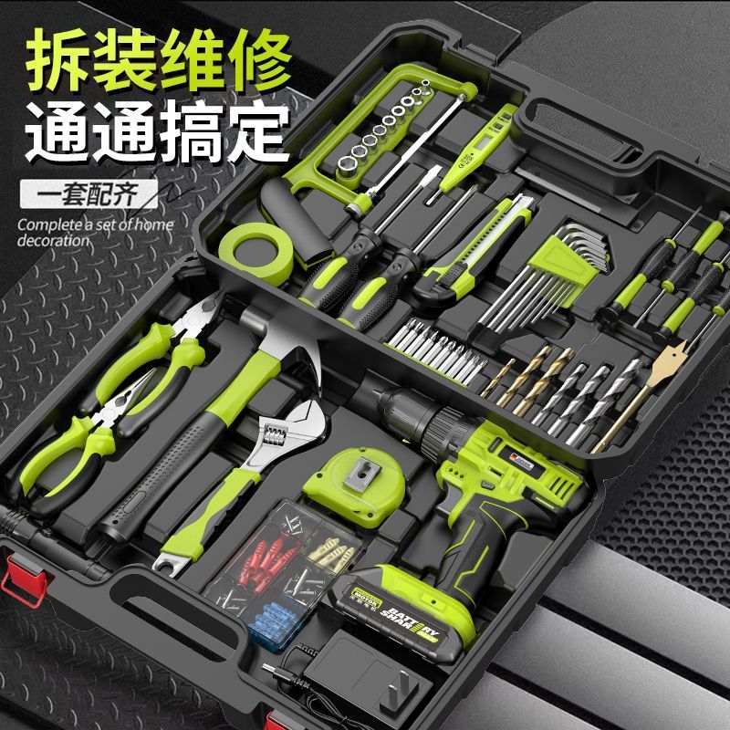 芝浦工具箱家用套装 多功能收纳五金维修组合大全车载无刷电钻全套