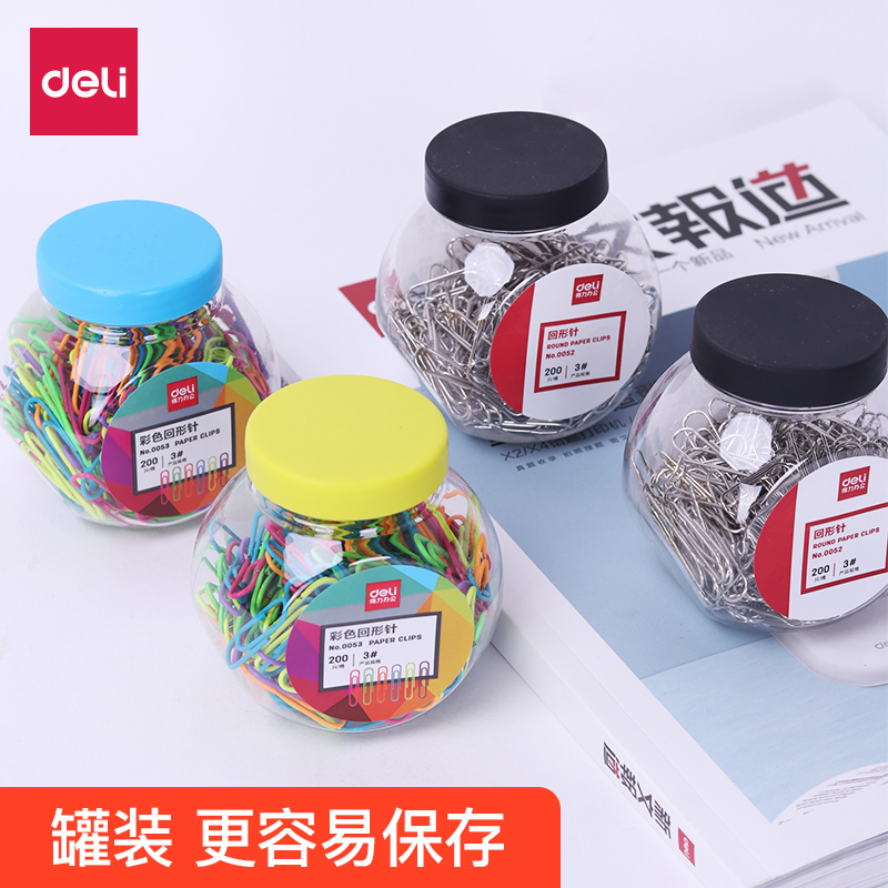 订文具镀镍加厚办公用品 得力回形针彩色创意卡通曲别针回行型针装 包邮 1000枚