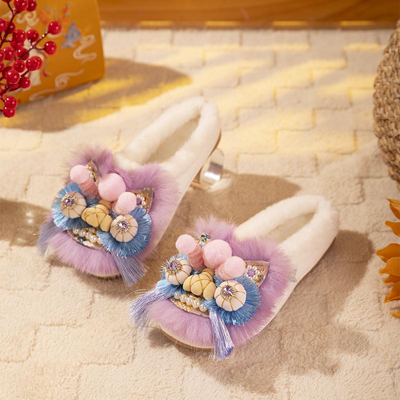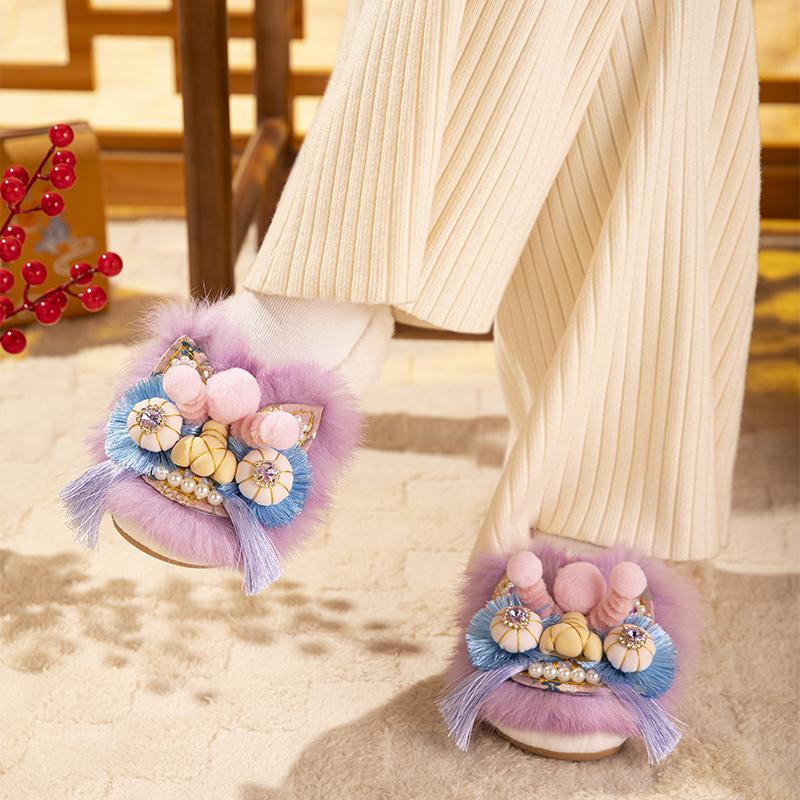 室内家居毛毛加绒保暖防滑棉拖女 2025新款 踩屎感棉拖鞋 女士秋冬季