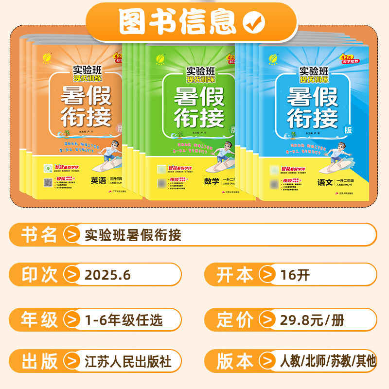 2025秋实验班提优训练暑假衔接一年级二年级三四五六年级上册暑假作业语文人教数学苏教版 练习册英语暑期衔接训练子大考卷上