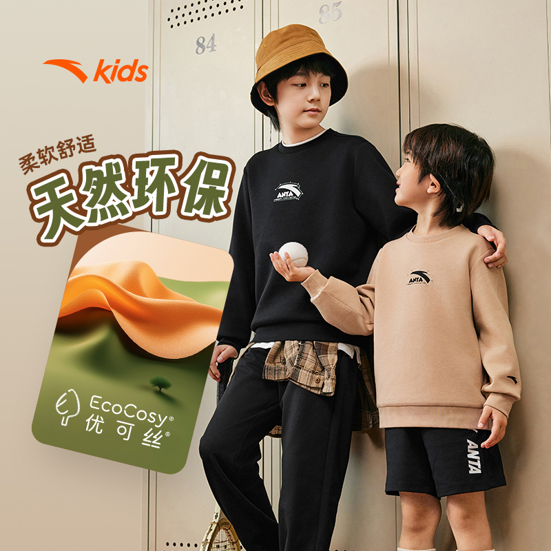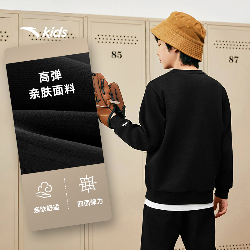 T血 大童男生卫衣长袖 安踏儿童红色卫衣男童圆领套头衫 2025年新款