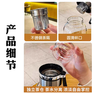 高硼硅玻璃水杯大容量吨吨桶水壶防摔耐高温墩墩茶水分离泡茶杯子