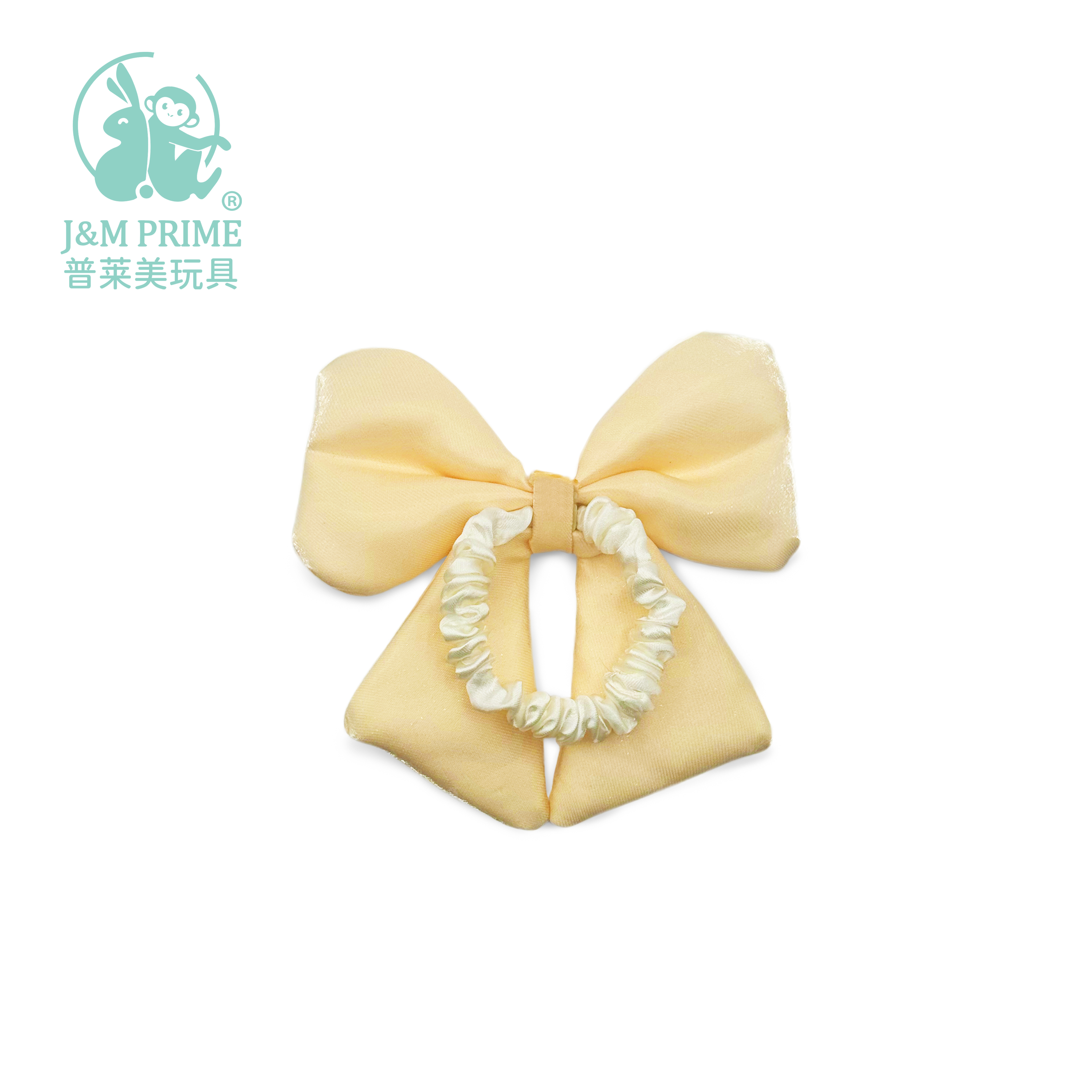 普莱美JMPRIME奶黄色法式 缎面甜美蝴蝶结发饰领结毛绒玩偶配饰