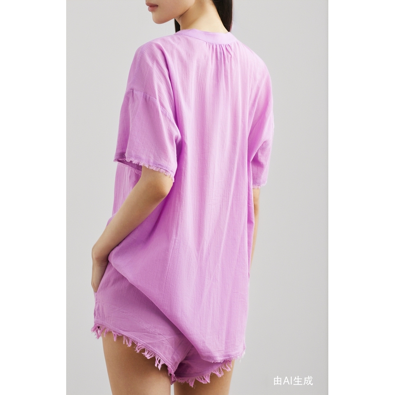 式 Stories女士毛边棉质巴里纱衬衫 Love 睡衣 抢先购