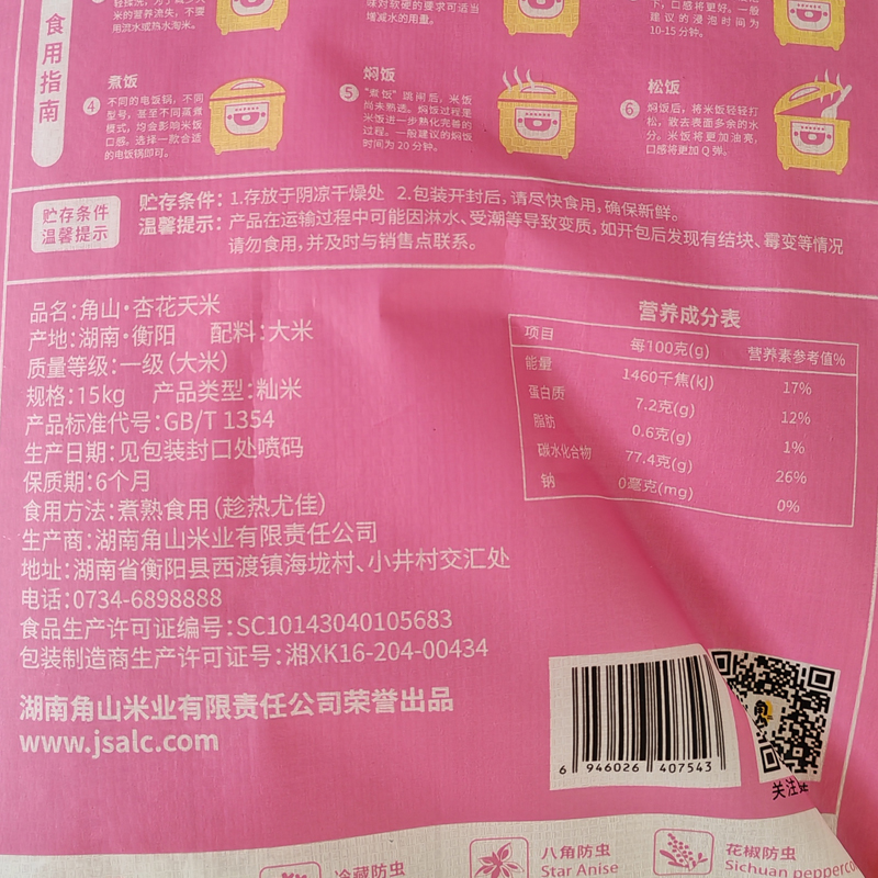 角山大米杏花天30斤长粒香米南方晚稻丝苗米软糯当季 新米籼米15kg