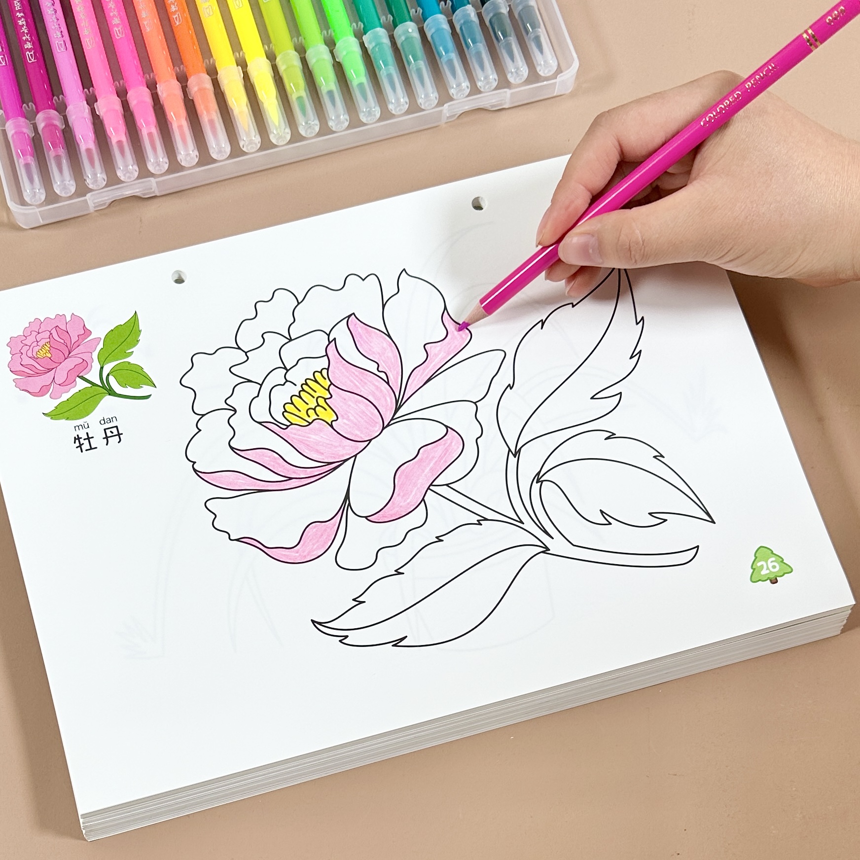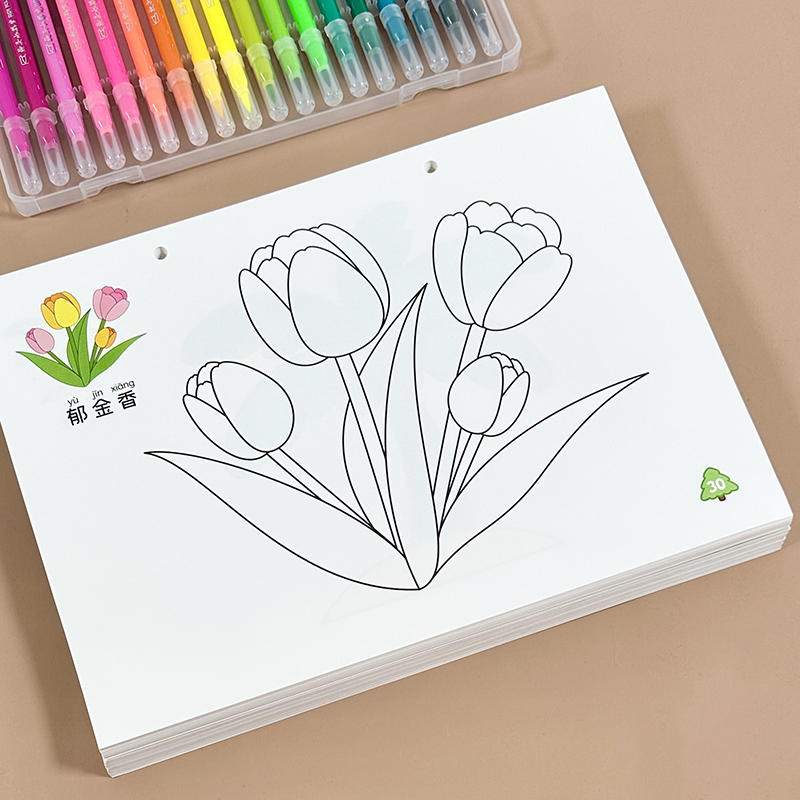 儿童马克笔涂色画画本3 6岁幼儿园涂鸦填色画花卉植物A4纸绘画书