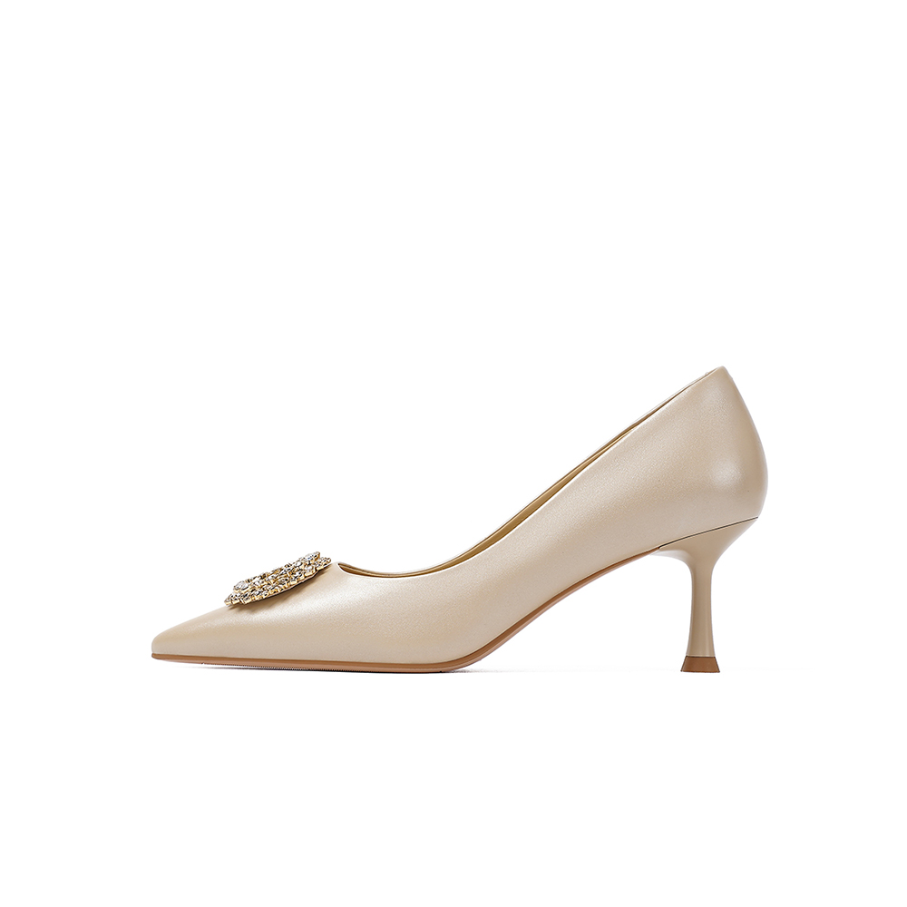 B2616CQ5 不累脚粗跟尖头女浅口单鞋 百思图25秋商场新款 裸色高跟鞋