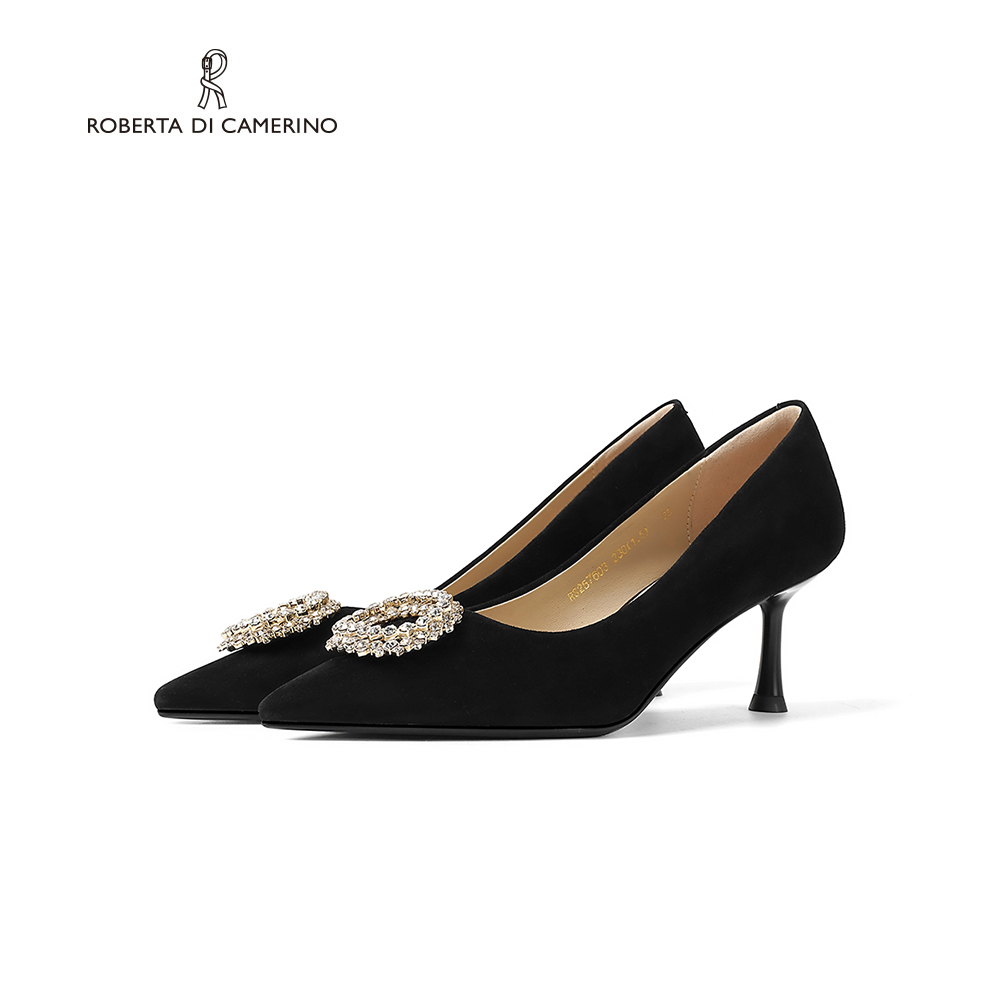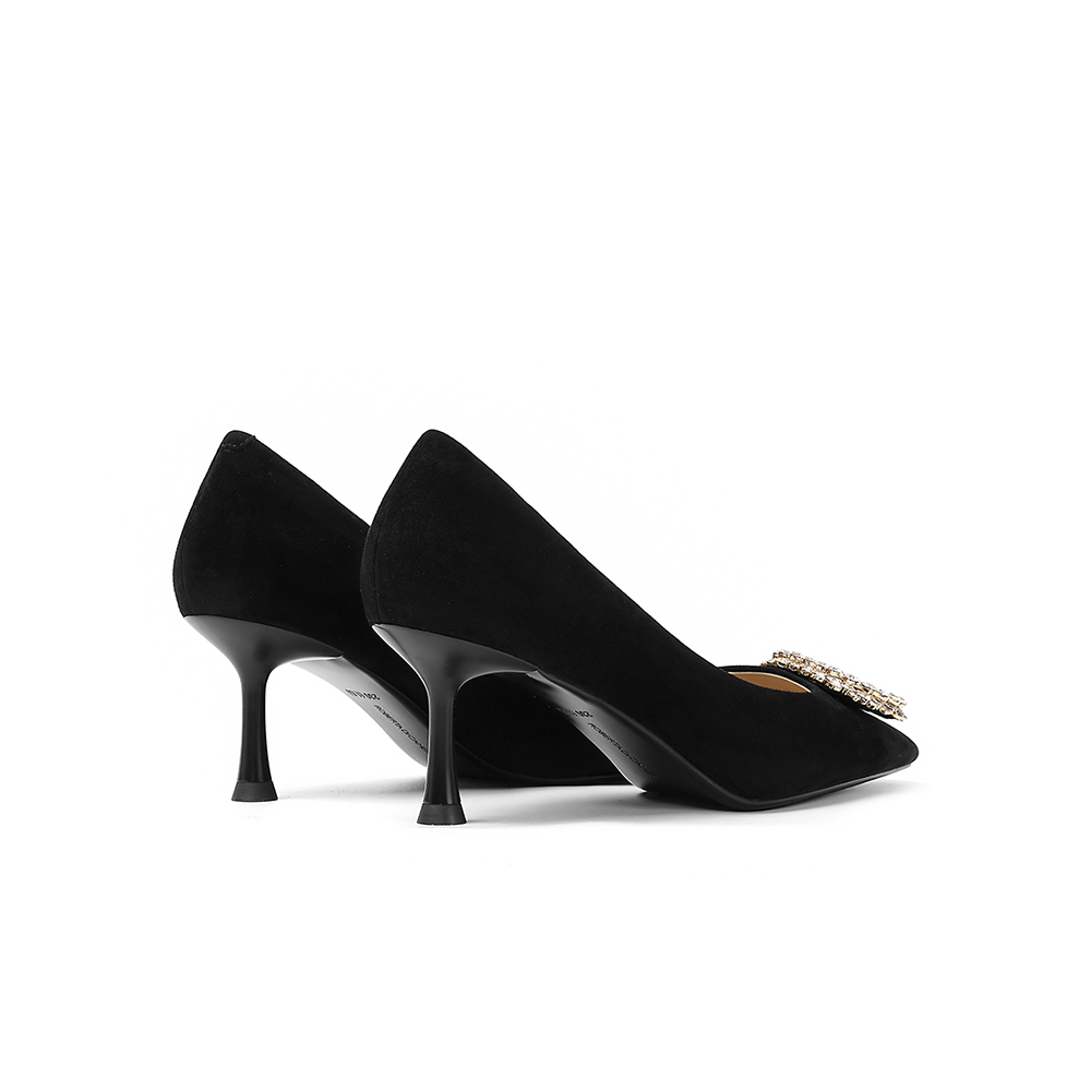 宽楦羊皮尖头细跟通勤浅口单鞋 大码 黑松露 秋冬女鞋 7or9黑色高跟鞋