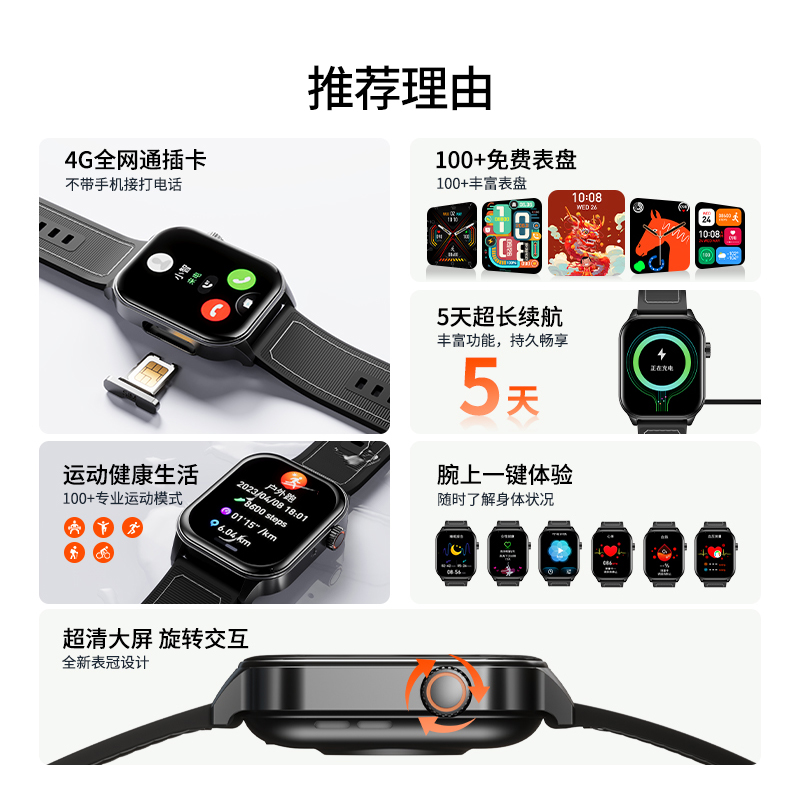 4g全网通可插卡初中小学生男童女孩手环手机 纽曼儿童电话手表学生防水多功能智能gps定位电信版 官方正品