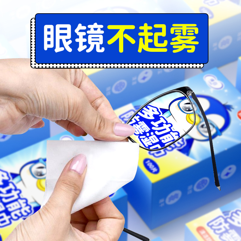 眼镜防雾清洁湿巾秋冬多用途头盔镜片防起雾神器一次性擦拭眼镜布