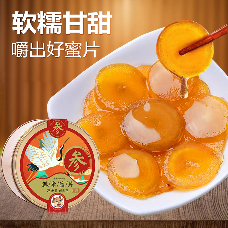 长白山人参蜜片食用鲜人参含片即食鲜参蜜片滋补养生特产礼罐装