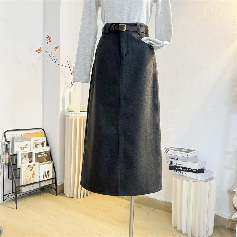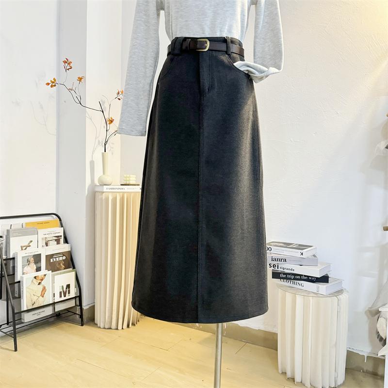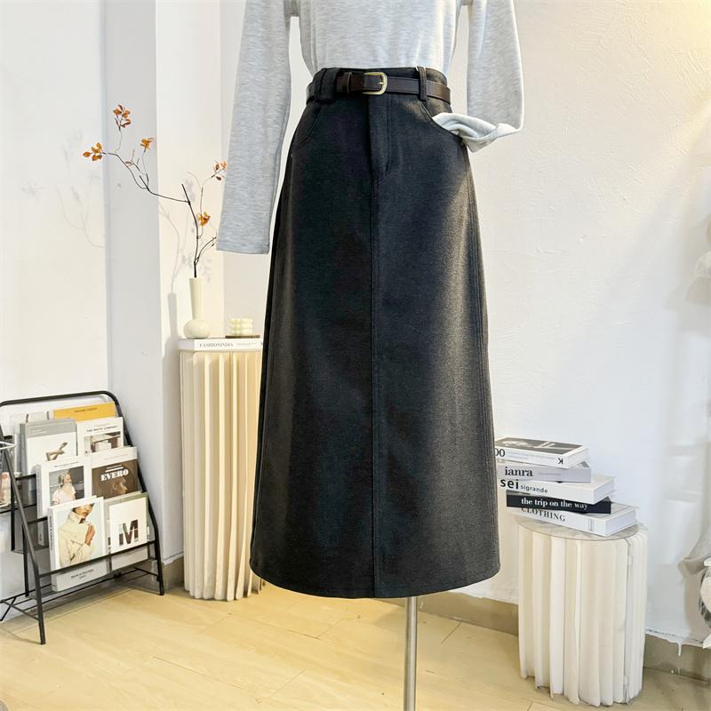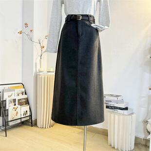 优雅菱格简约H型长裙 时尚 秋水伊人毛呢设计半身裙2025年冬季 新款