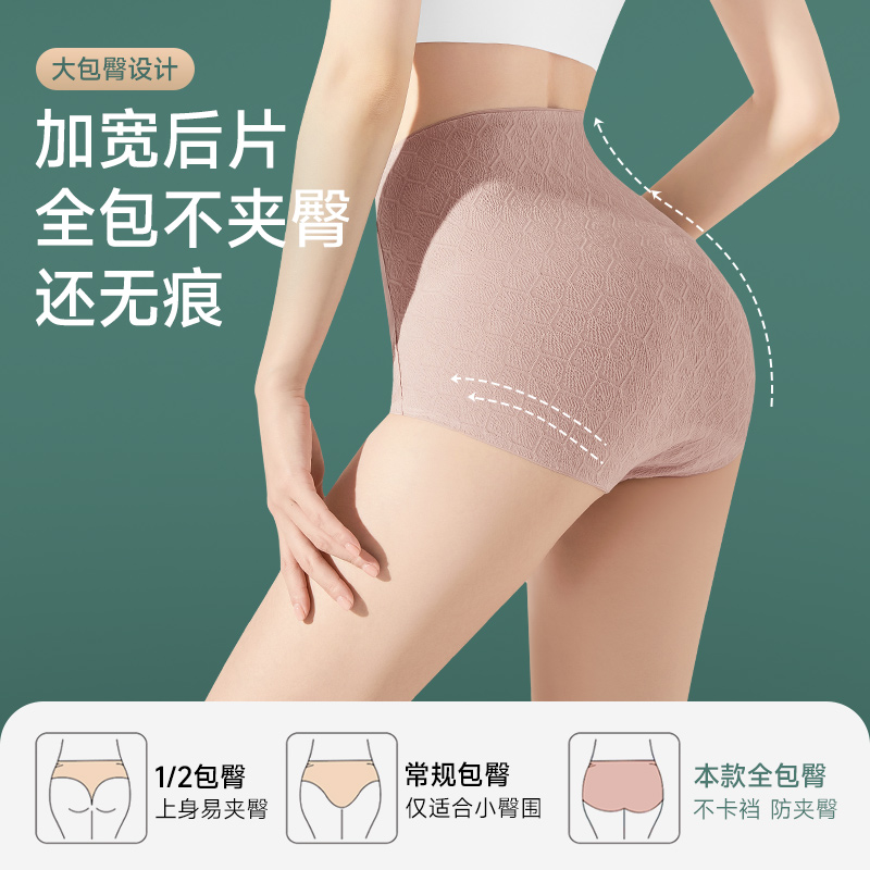 7A抑菌加长裆不夹臀棉女士内裤 100%纯棉裆内裤 高腰提花 婷美
