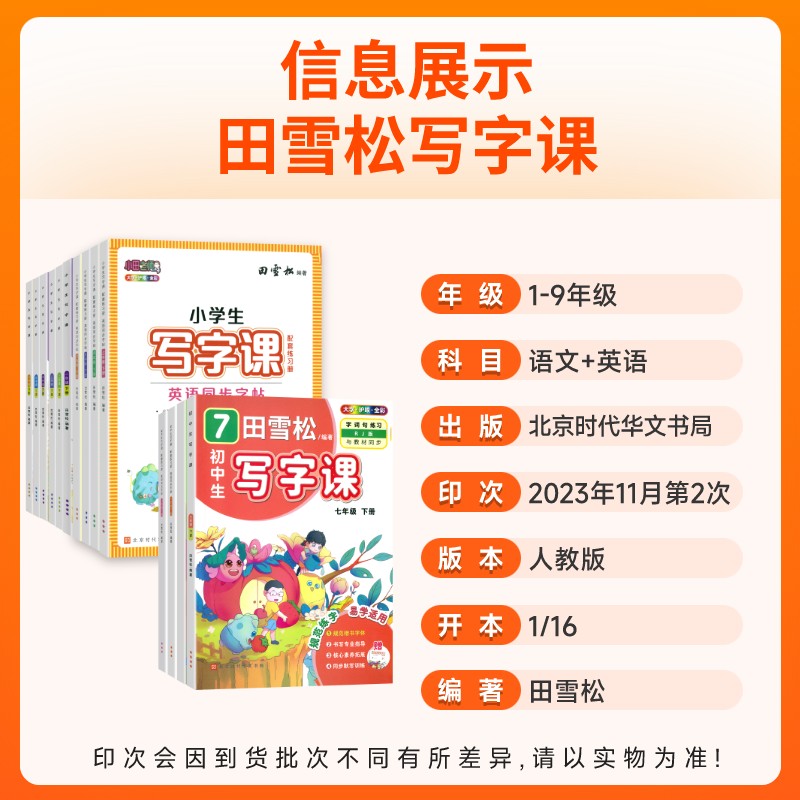 同步小学生练字帖 字帖一二三四五六年级下册七八九年级上册语文同步字帖每日一练楷书 官方新版 田雪松小学生写字课语文英语人教版