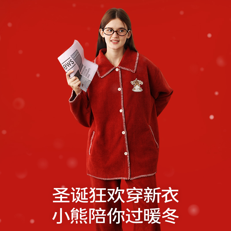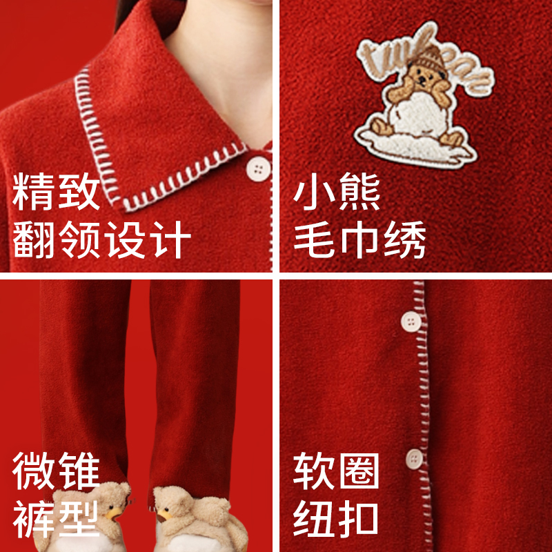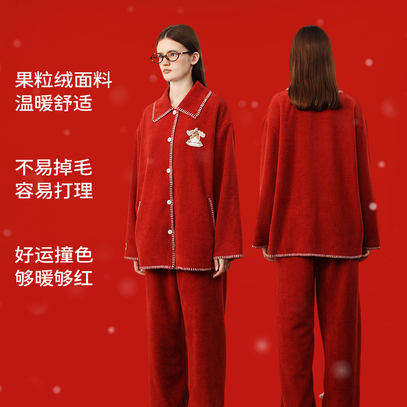 2025新款 套装 长裤 都市丽人情侣睡衣纯棉结婚本命年红色家居服长袖