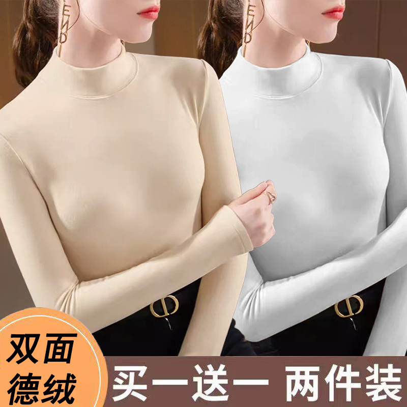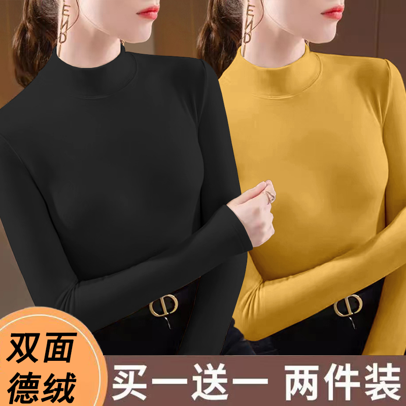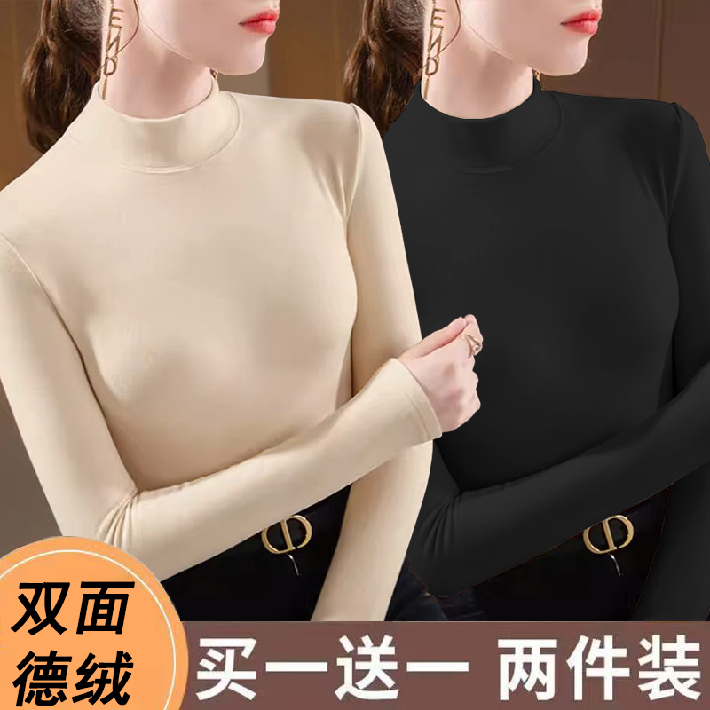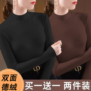 长袖 女秋冬内搭修身 t恤女上衣 双面德绒保暖半高领打底衫 2024新款