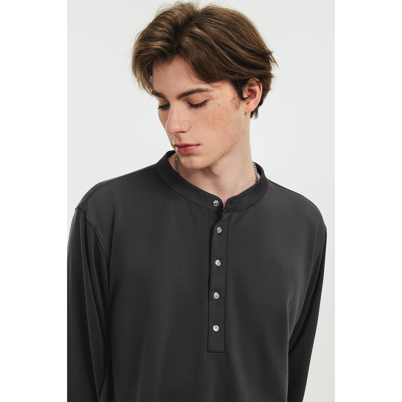 Lilbetter莫代尔混纺珠地丝滑触感亨利领长袖 T恤2025秋复古打底衫