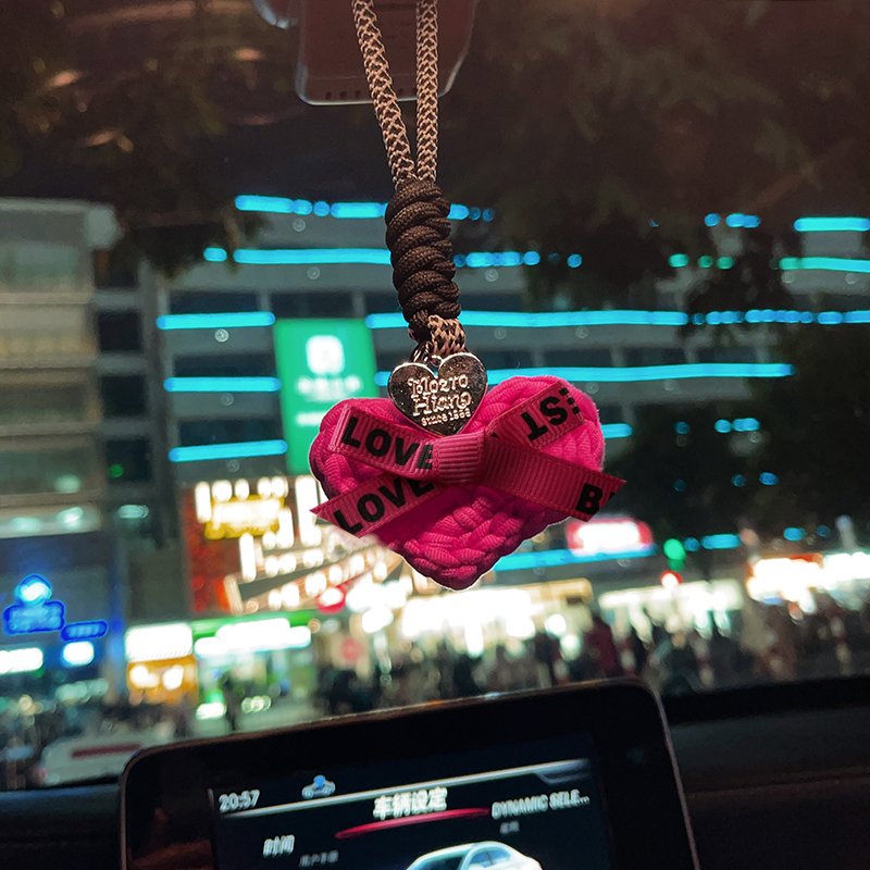 汽车内后视镜挂件玫红爱心挂饰毛线手工编织笑脸高级感可爱吊坠女