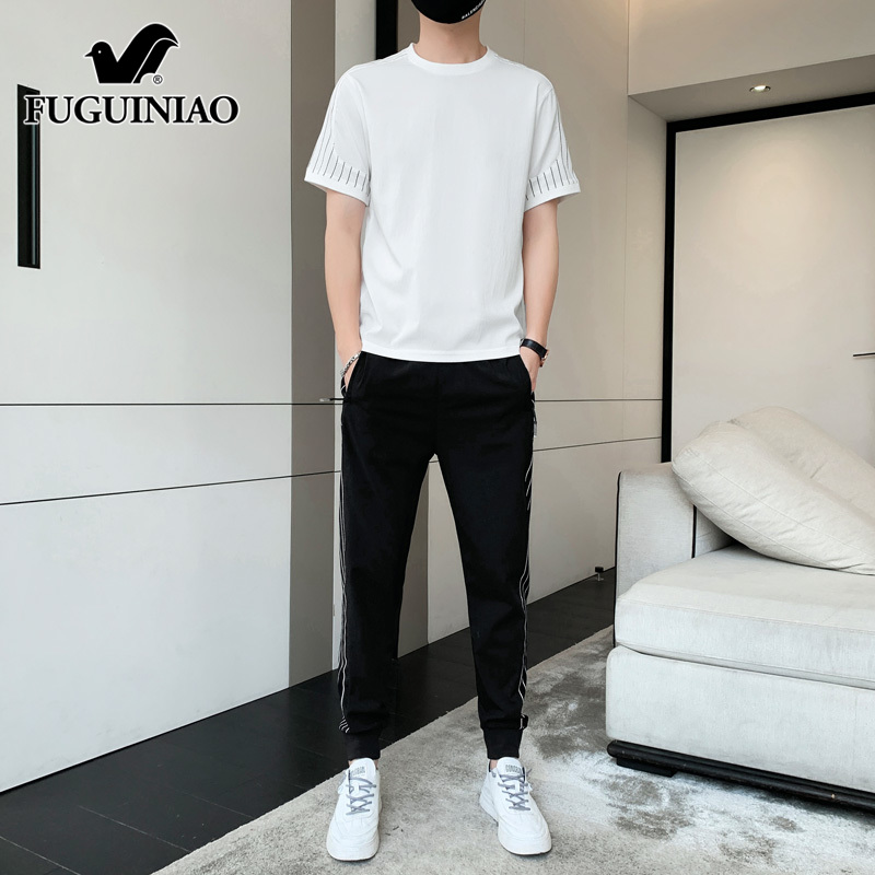 男士 新款 搭配冰丝短袖 夏季 一套男 t恤潮流长裤 富贵鸟休闲运动套装