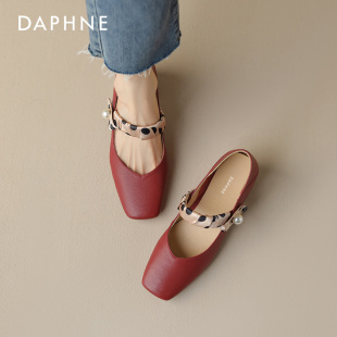 粗跟玛丽珍小皮鞋 红色中跟女鞋 女春夏2024新款 达芙妮真皮软底单鞋