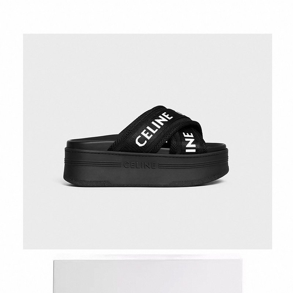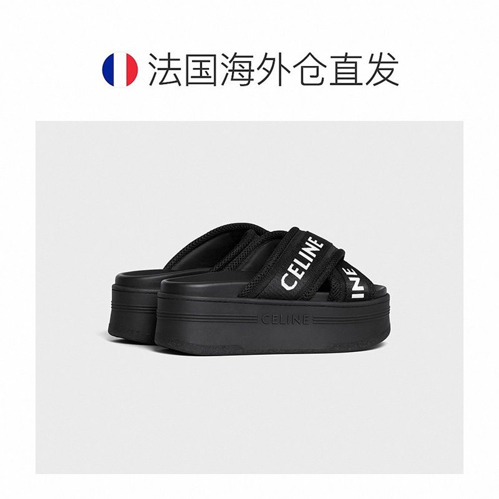 欧洲直邮Celine思琳女士拖鞋 休闲度假舒适简约 黑色提花厚底时尚
