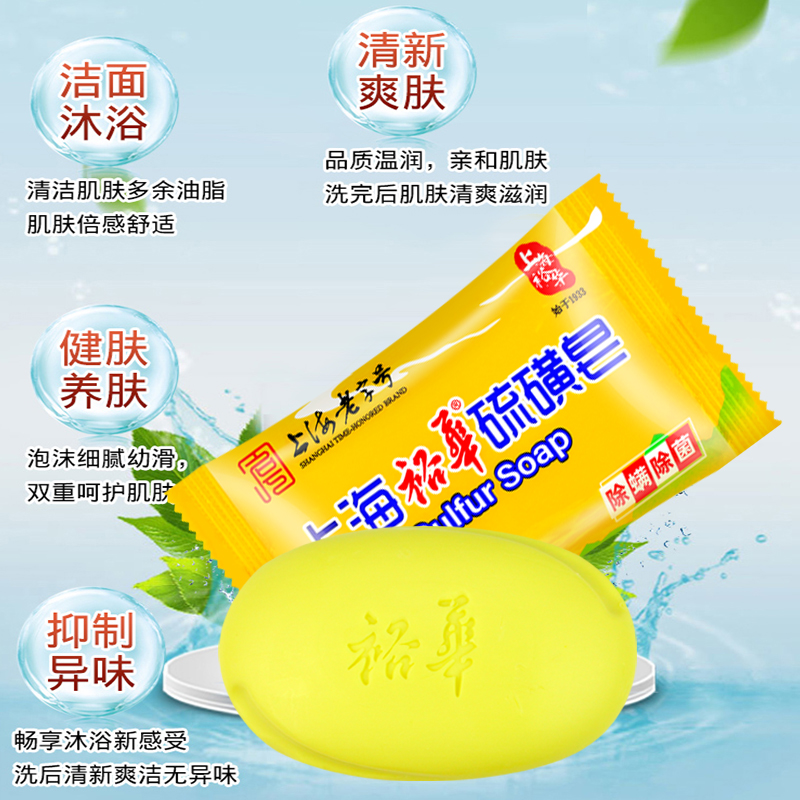 上海硫磺皂85g杀螨抑菌清洁皂 国货清洁香皂皂洗手洗脚通用 经典