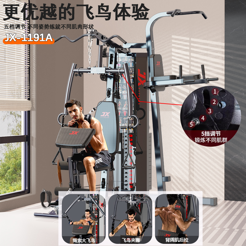 JX综合训练器三人站家用大型器械力量训练套装 组合多功能健身器材