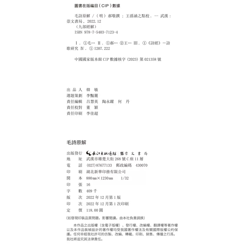 毛诗原解 晚明经学大家郝敬著 思考 新书 崇文书局 及义理 九部经解 对儒家经典 正版 王孙涵之校