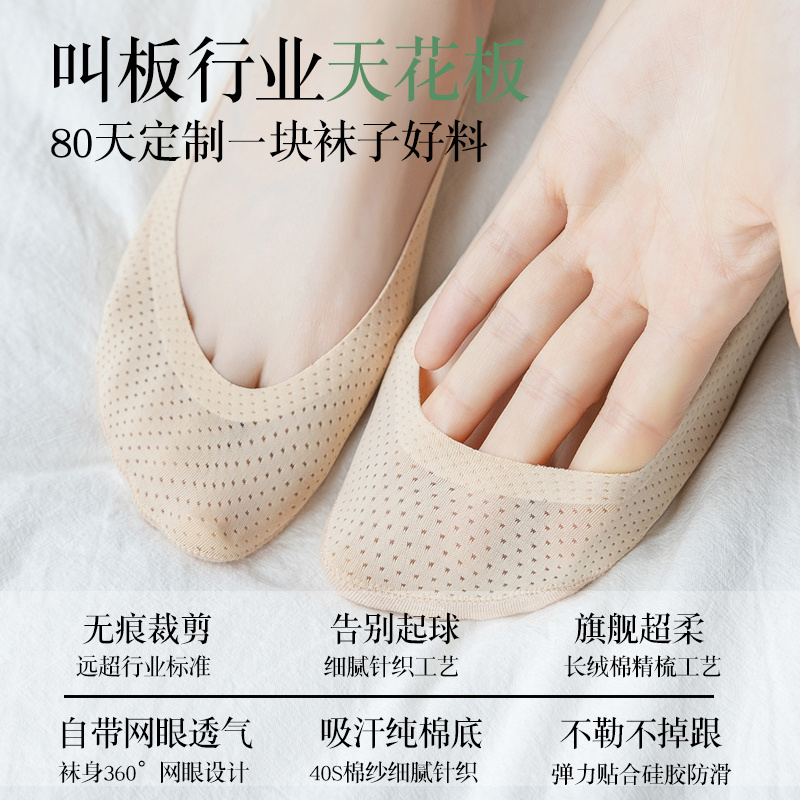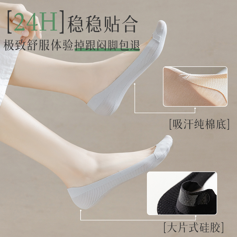 高跟鞋 袜子薄款 袜子 冰丝隐形袜棉制底防滑不掉跟浅口鞋 船袜女夏季