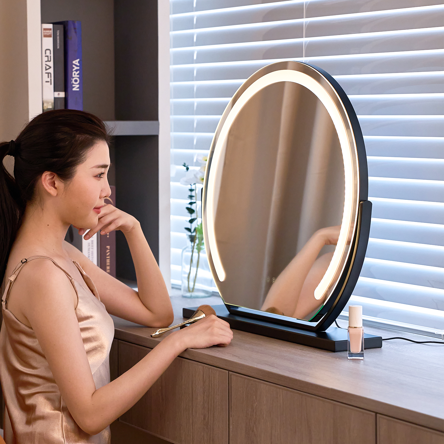 创镜半圆led化妆镜带灯台式 桌面大号充电梳妆台镜子宿舍网红卧室