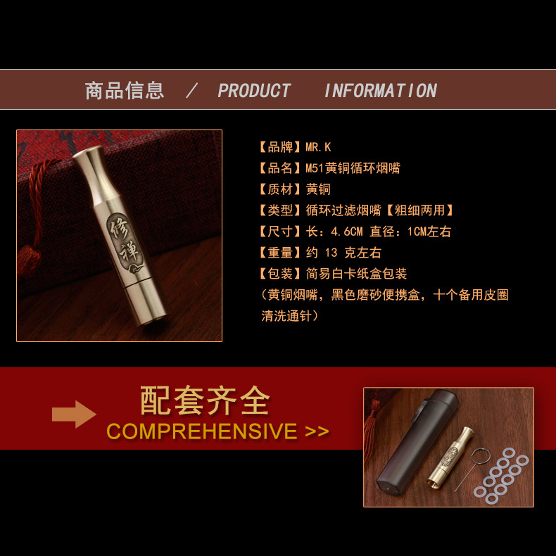 烟嘴循环型过滤嘴可清洗过滤器刻字个性 深雕粗细两用黄铜滤嘴
