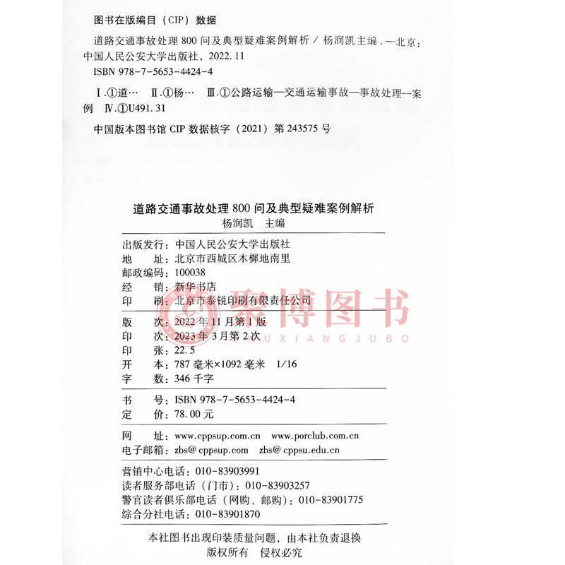杨润凯 交通事故处理程序认定复核损害赔偿 公安大学出版 交通事故处理指导书 参考书 社 道路交通事故处理800问及典型疑难案例解析