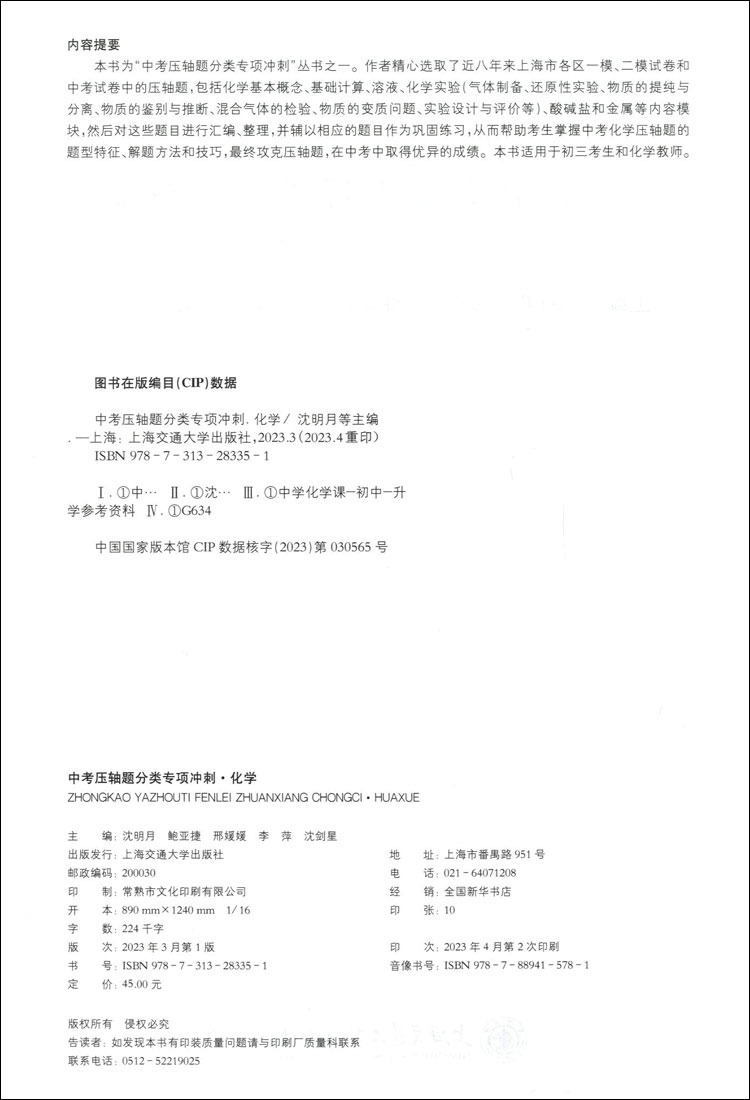2025中考压轴题分类专项冲刺化学中考压轴题训练初三初中化学推断题实验探究题试卷试题九年级练习册总复习资料上海交通大学出版 社