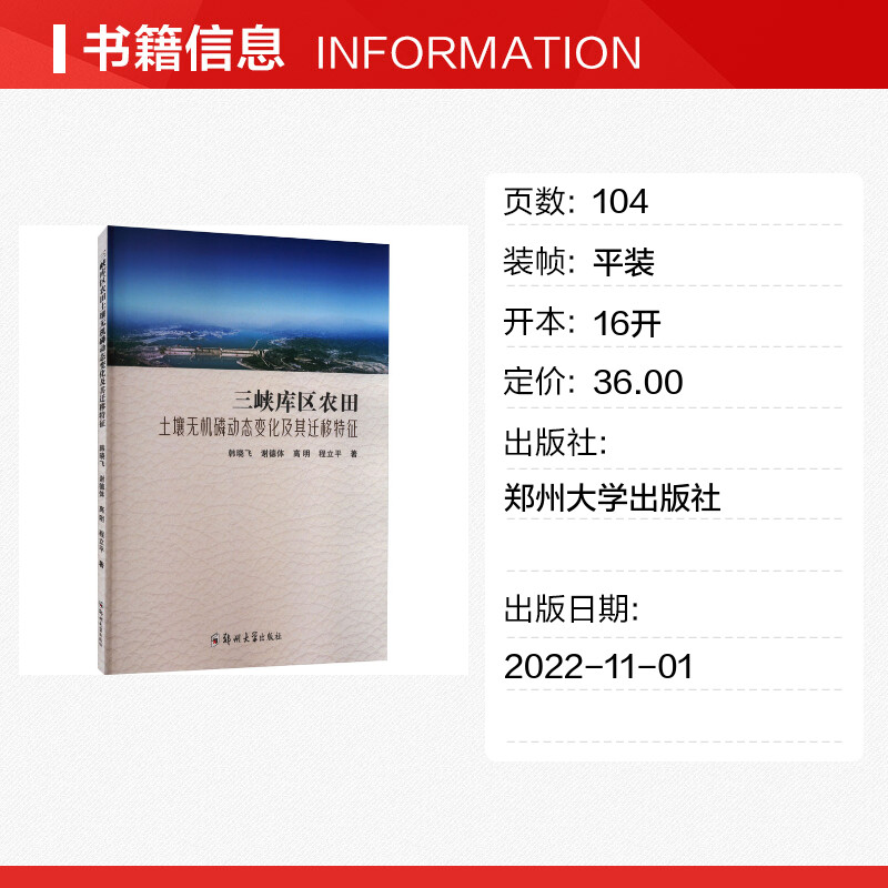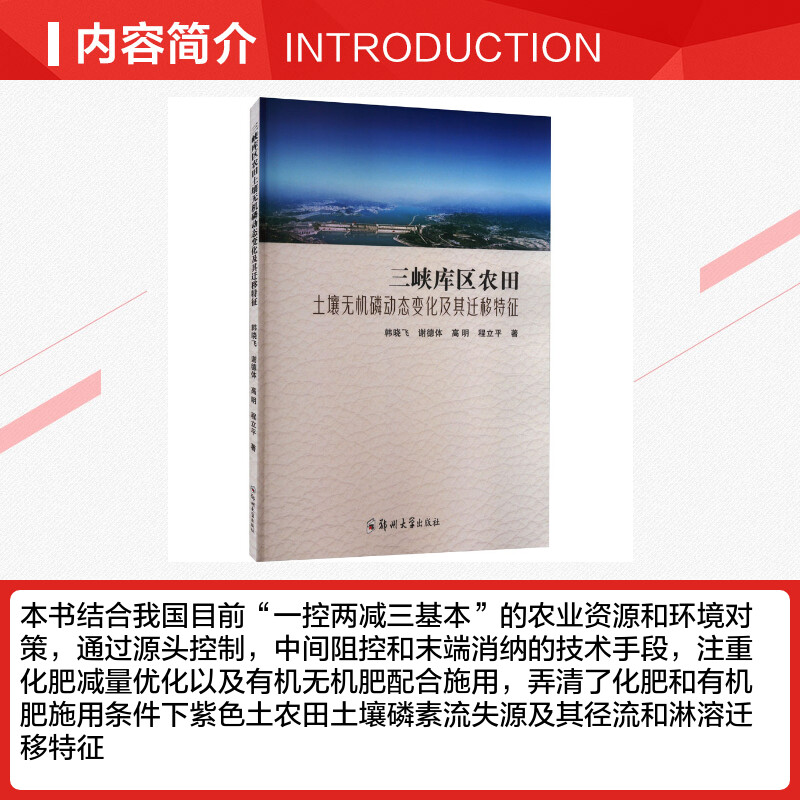 著 农业基础科学大中专 新华书店正版 三峡库区农田土壤无机磷动态变化及其迁移特征 郑州大学出版 等 图书籍 社 韩晓飞
