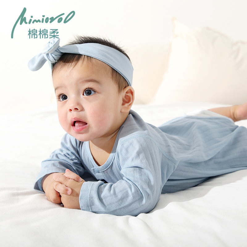 男女幼儿睡衣纯棉空调服哈衣 长袖 婴儿衣服宝宝开裆连体衣夏季 薄款