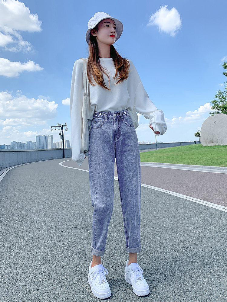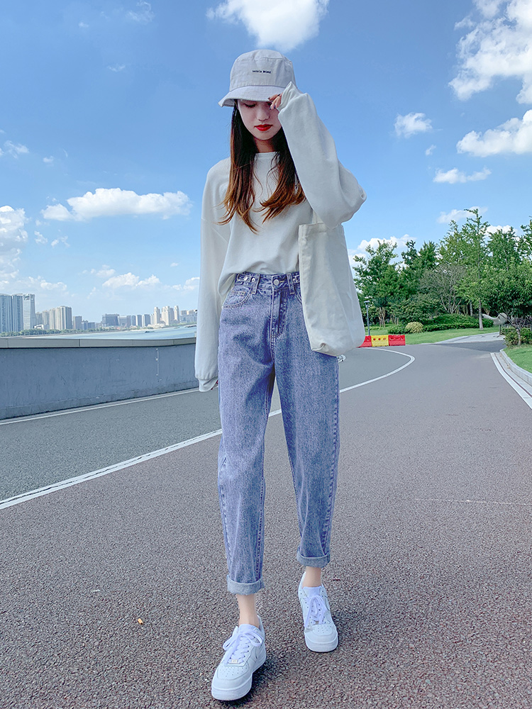 胖mm显瘦小个子九分老爹裤 女高腰宽松大码 哈伦牛仔裤 2025春秋新款